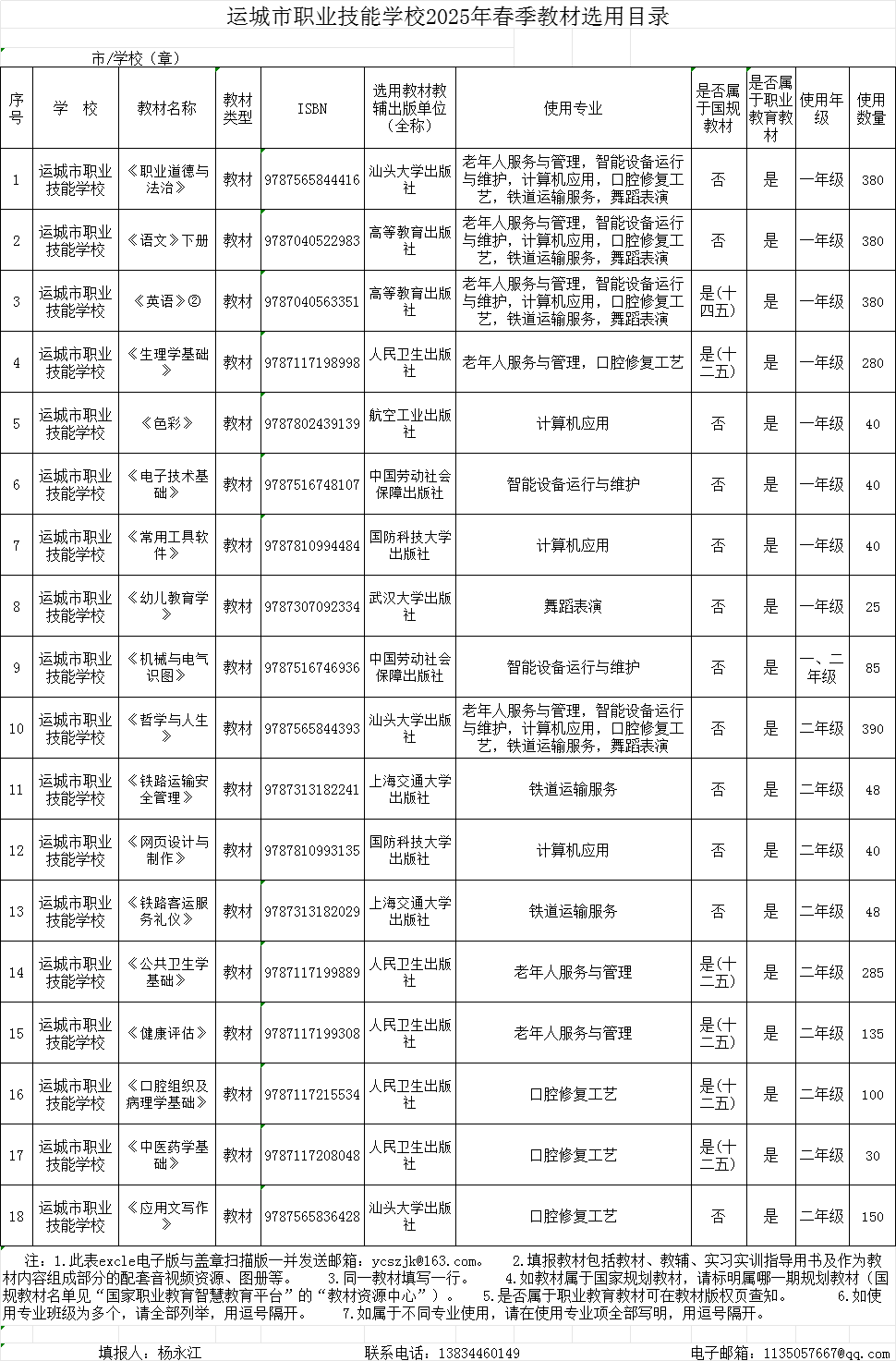 运城市职业技能学校2025年春季教材选用目录